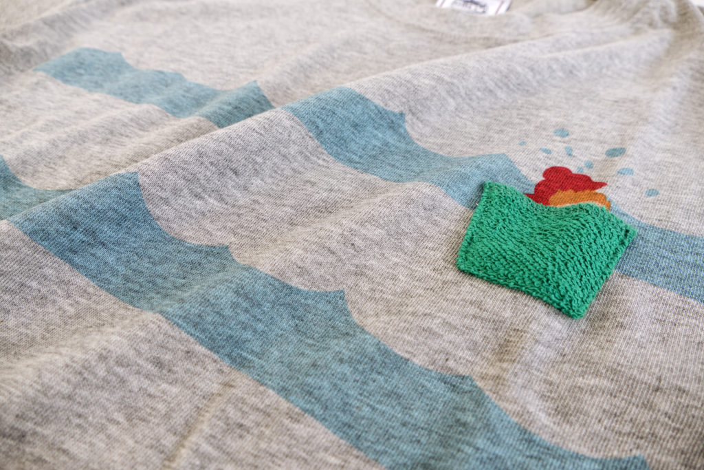 左胸のバケツの形をした小さなポケットには、
